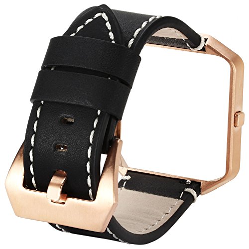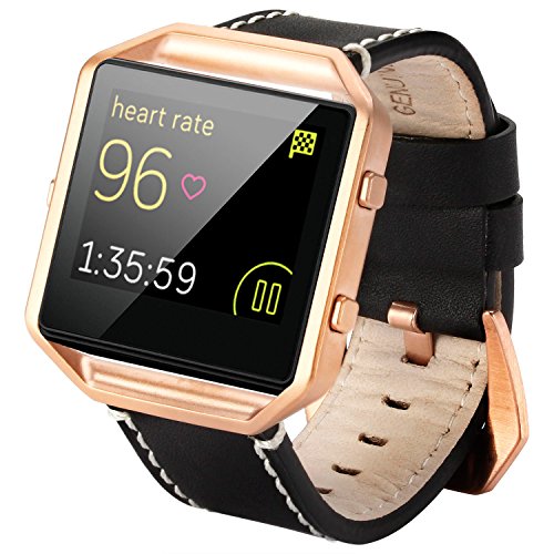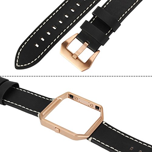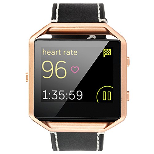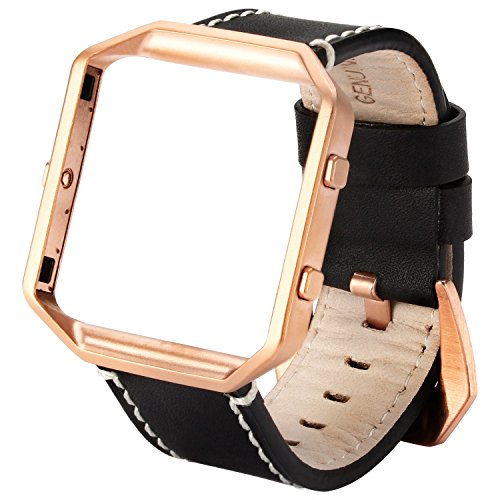 Fitbit Blaze Leather Bands, Engive Genuine Leather Replacement Bands Watch Straps with Rose Gold Metal Frame for Fitbit Blaze Women Men
