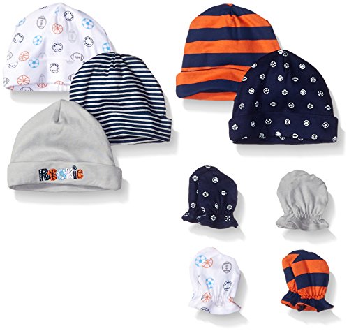 Gerber Baby Boys' 9 Piece Cap (0-6M) and Mitten (0-3M) Bundle, Sports, Newborn