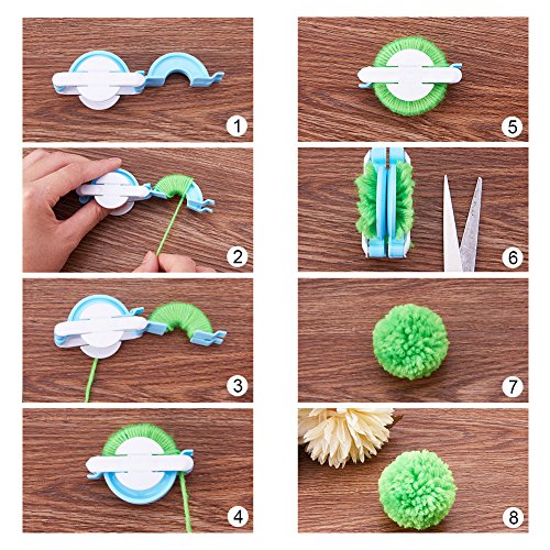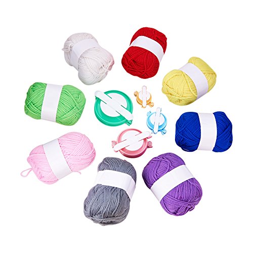 PandaHall Elite DIY Craft Sets with 8 Rolls Polyacrylonitrile Fiber Yarn and 4Pcs Pom-pom Maker Fluff Ball DIY Craft Tool Mixed Color
