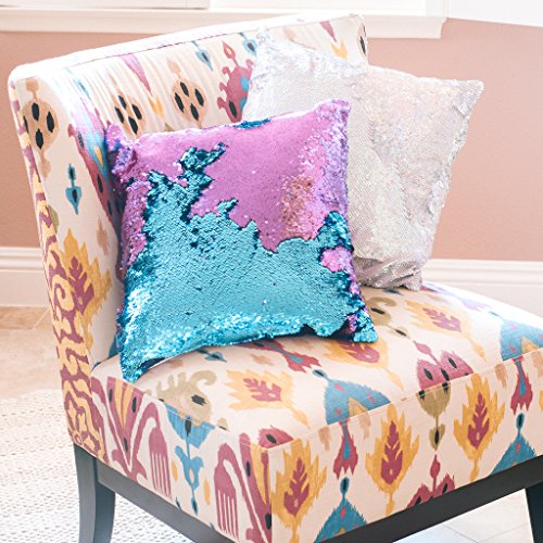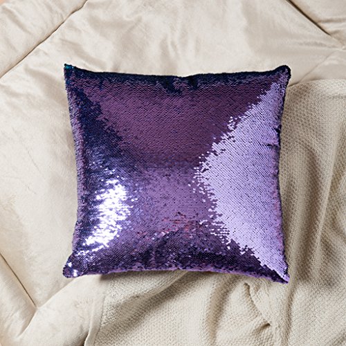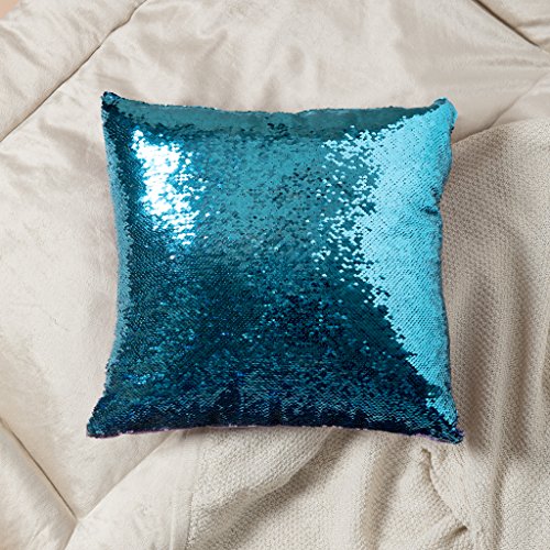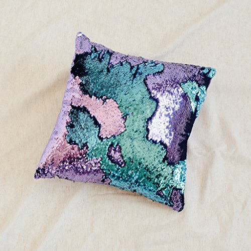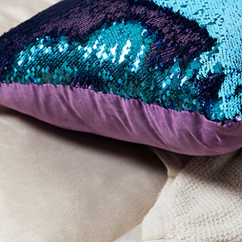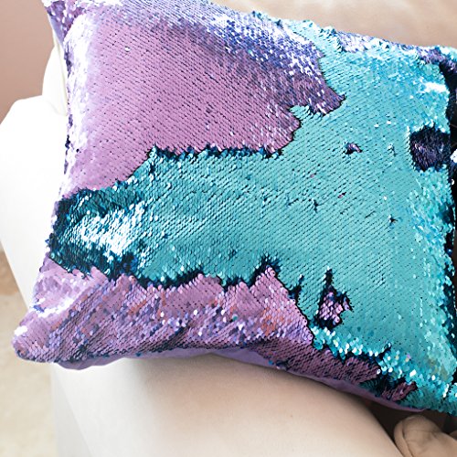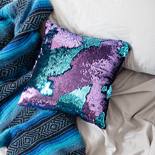 16x16 Mermaid Pillow with Insert Aqua/Purple with Flip sequin Throw Pillow Mermaid Magic Glitter Reversible Color Changing Gifts For her Anti stress & Anti Depression Therapeutic mermaid pillows.