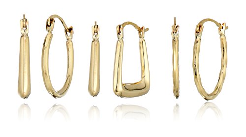 10K YELLOW GOLD SET OF THREE - SQUARE HOOP/OVAL TEXTURED HOOP/ROUND TUBE HOOP EARRINGS