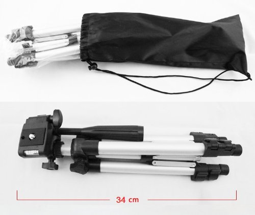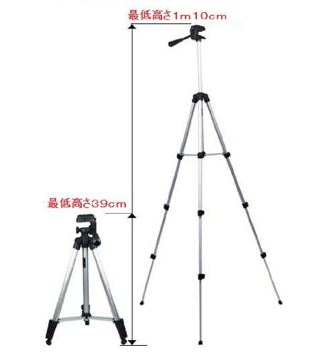 Aluminum tripod height: Adjustable from 39 cm to 110 cm.
