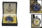 -. Feature : Stainless-steel pocket watch boasts a colorful Freemasonry symbol at its center, surrounded by intricate leaf-and-scroll design. / Watch face features gold-colored masonic square-and-compass symbol and large, easy-to-read numbers. / Hangs from link chain with belt clip. Comes elegantly gift boxed. / Japanese quartz movement. / 1.5" diameter face. 11" long chain.
