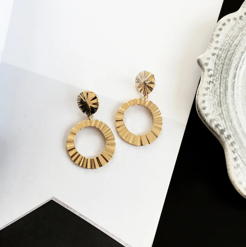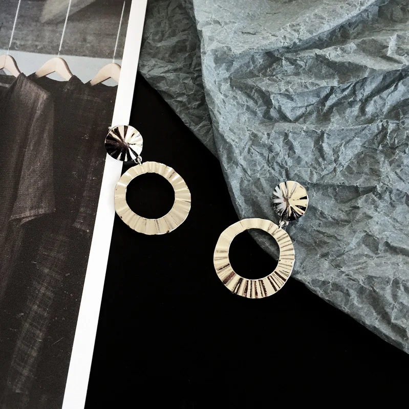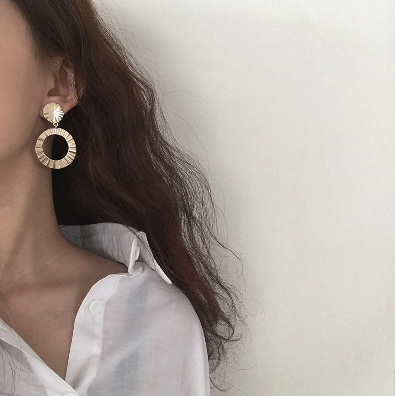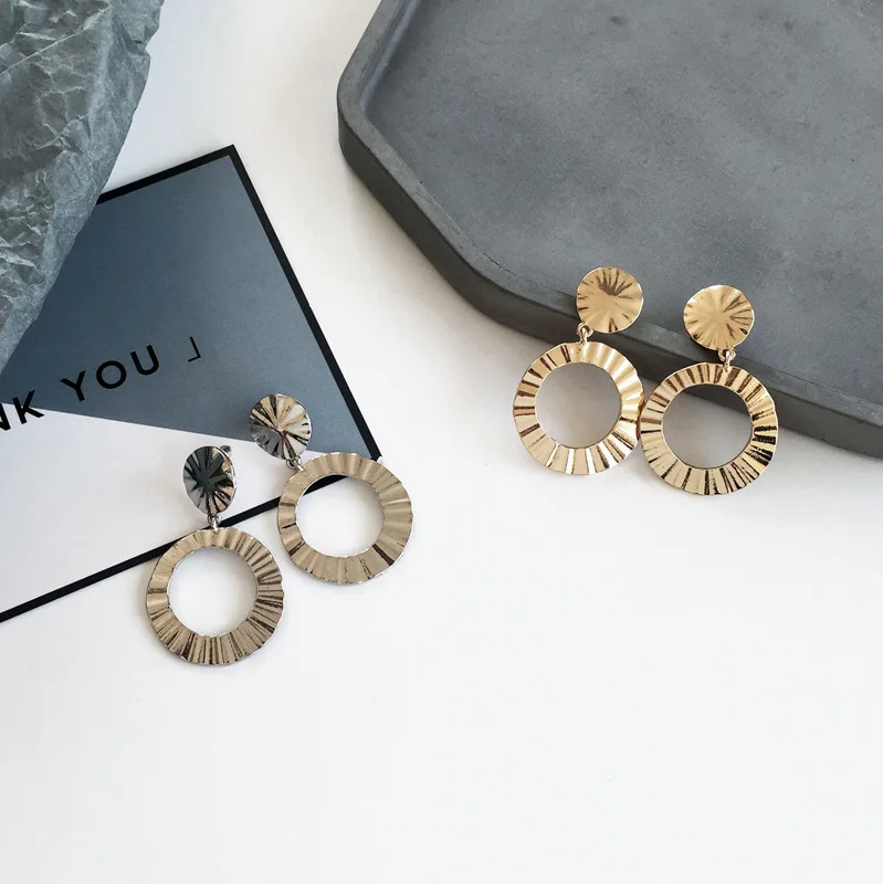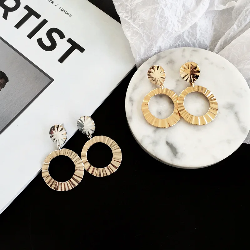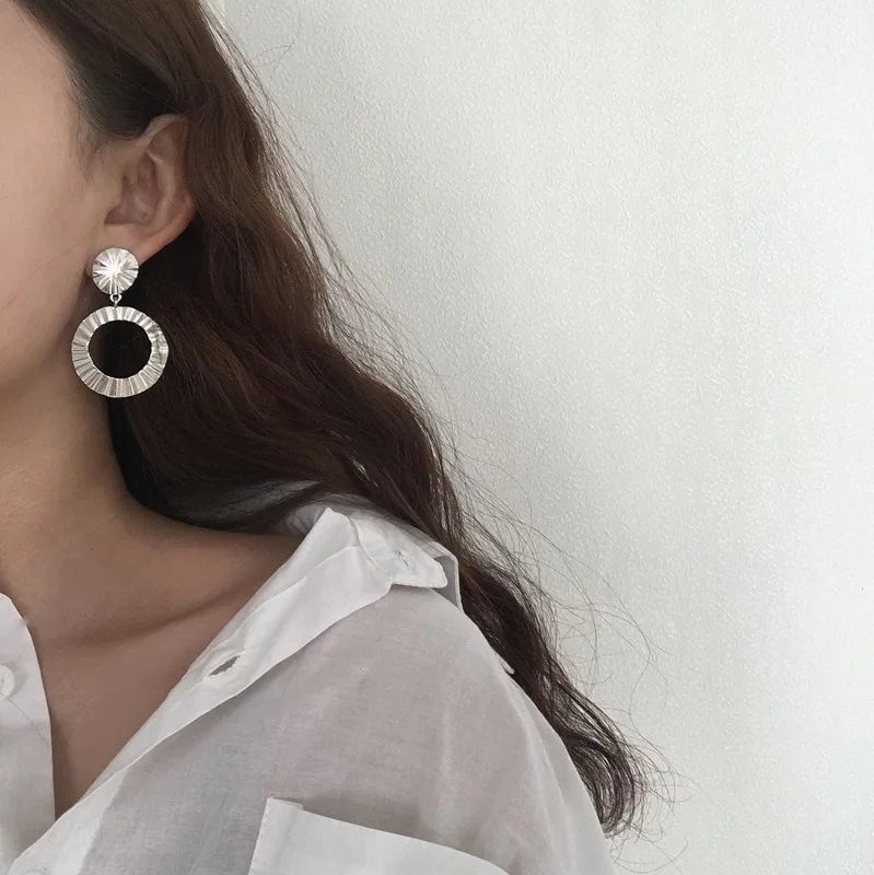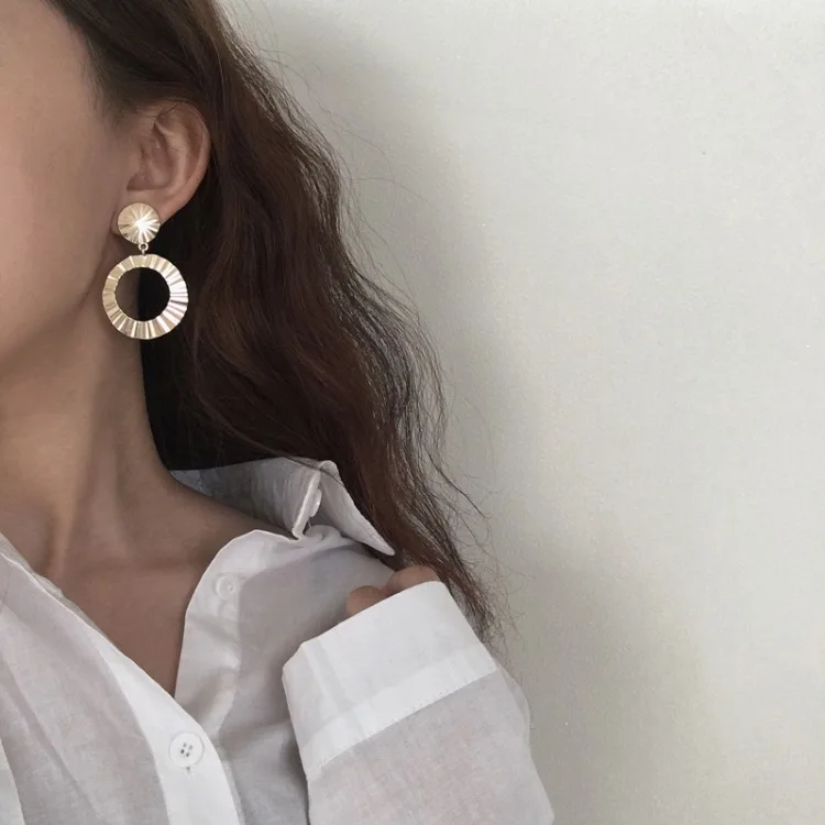Pedant shape:Geometry Big Circle Silver Gold Color Long Earrings