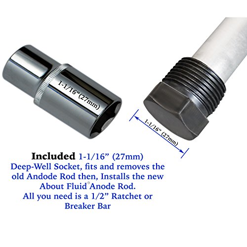 - ABOUT FLUID KIT. Most Water Heaters use this kits’ ¾ NPT Hex-Type Anode Rod. This kit also Includes the Hard-to-find 1-1/16 Inch (27mm) 6-Point Deep-well Chrome Vanadium Socket used for removing your old, and replacing the new anode. Pipe Sealing Tape (PTFE) is included as well and there will be plenty left over for the next time you pull out and reinstall your anode rod to check its’ condition. All you provide is a ½ Inch Ratchet or Breaker Bar,a friend and your favorite beverage(not included).