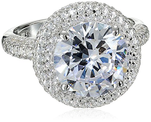 Charles Winston, S Silver, Cubic Zirconia 11mm Round CZ Ring, 5.00 ct. Center, 6.30 ct. tw., Size 8