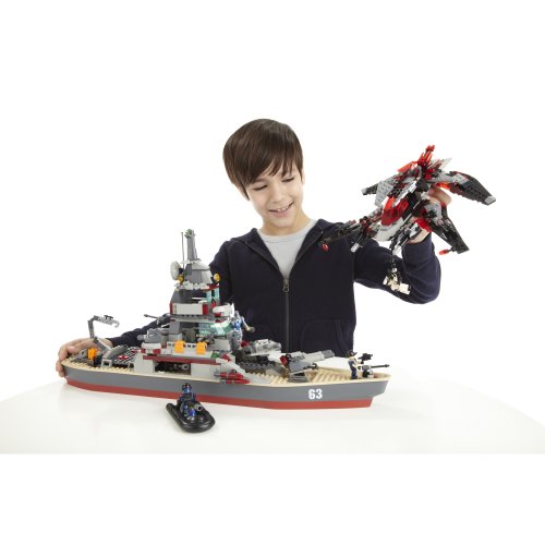 In your imaginary battles, the aliens are powerful and well-armed, but luckily, you’ve got the incredible armaments of the U.S.S. Missouri at your command. Missiles, torpedoes, machine guns and the most highly trained Kreon figure commandos are ready to take on the otherworldly threat in this flagship building set from KRE-O! Build it and pretend to join the battle! If you want to be on the cutting edge of brick play, and imagine yourself on the front lines of a battle to protect the Earth, KRE-O Battleship Building Sets are for you. High-octane, in-your-face-action-building is yours, with the sets that let you build like you play – without limits!Feature