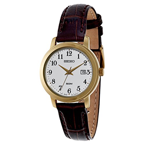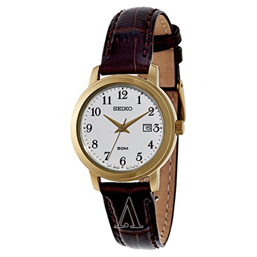 Seiko, Strap, Women's Watch, Stainless Steel Yellow Gold Plated Case, Leather Calf Skin Strap, Japanese Quartz (Battery-Powered), SUR822