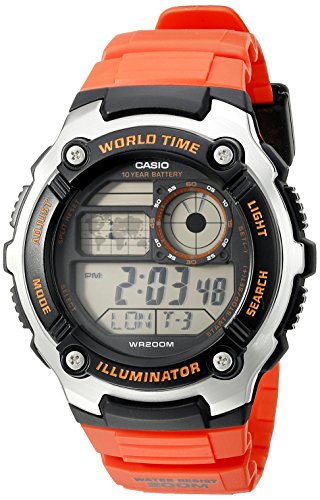 Casio Men's AE-2100W-4AVCF Digital 10-Year Battery Digital Display Quartz Orange Watch