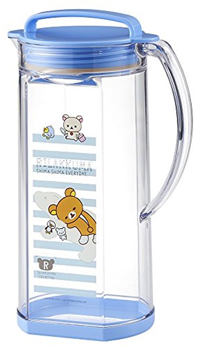 涼やかな印象の、リラックマの冷水筒です☆麦茶などの飲み物を入れて使ってね!上部に取っ手が付いているので、冷蔵庫からの出し入れもラクラクです♪