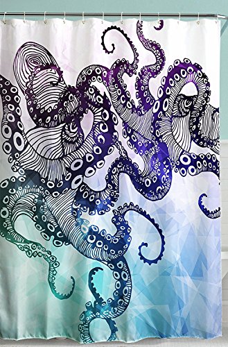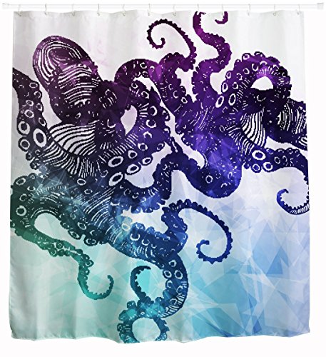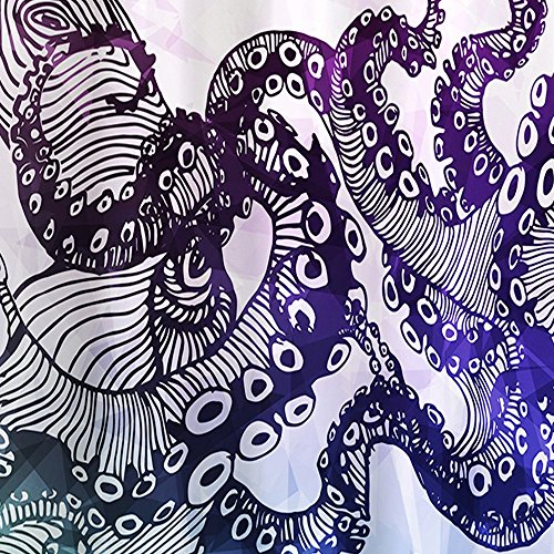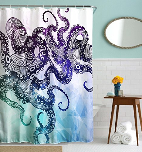 Unique Hipster Octopus Kraken Custom Ocean Abstract Art Shower Curtain, Waterproof and Mold Free Fabric Bath Shower Curtains, 72 x 72 Inch , Blue Teal and Purple