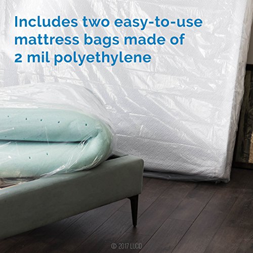 -. Brand : LUCID -. Feature : Water and dirt resistant material keeps mattresses clean / A great solution for moving and storing furniture / Can be used to dispose of a bedbug infested mattress / Includes two easy-to-use mattress bags made of 2 mil polyethylene / Three size options accommodate all mattresses sizes -. Label : LUCID -. Manufacturer : LUCID -. Model : LU02MBPARENT -. MPN : LU02MBPARENT -. PartNumber : LU02MBPARENT -. ProductGroup : Home -. ProductTypeName : HOME_BED_AND_BATH -. Publisher : LUCID -. Studio : LUCID -. Title : LUCID 2-Pack Mattress Moving and Storage Bags - Water and Dirt Resistant 2 mil Polyethylene