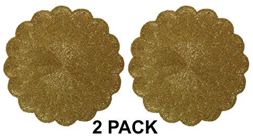 Scalloped Round Hand Beaded Charger Placemat in Gold - Set of 2 - 14 Inches round