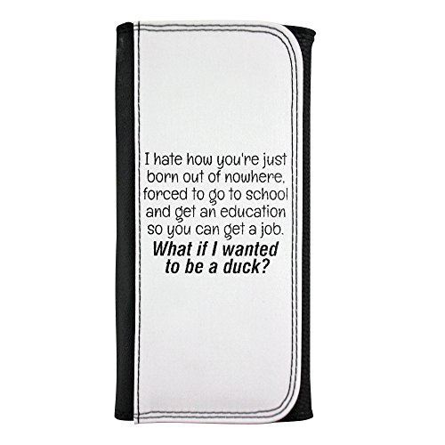 I hate how you're just born out of nowhere, forced to go to school and get an education so you can get a job. What if I wanted to be a duck? leatherette wallet!
