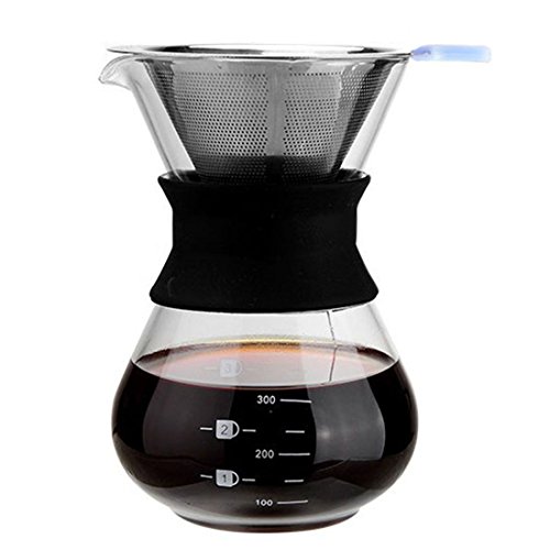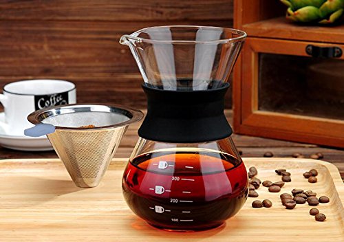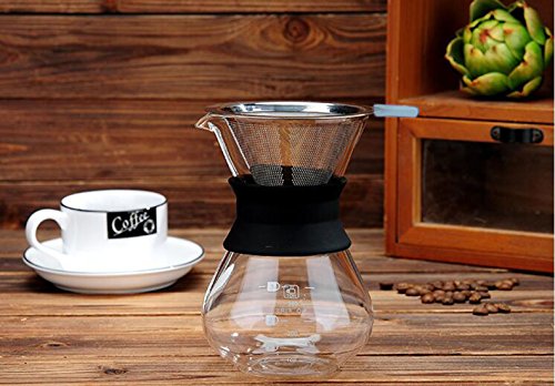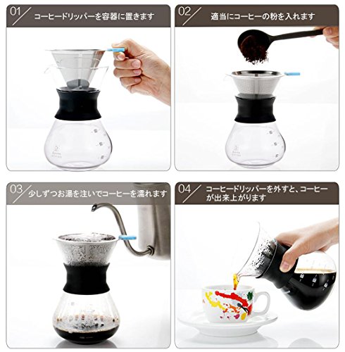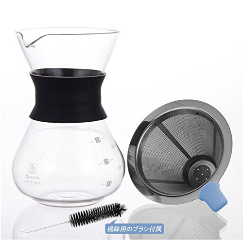 원본상품명: HomySnug コ?ヒ?ドリッパ? ステンレスフィルタ? コ?ヒ?サ?バ? 掃除用ブラシ付き 2層メッシュ 耐熱ガラス フィルタ?不要 1~4杯用 400ML