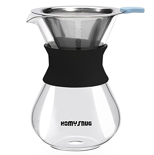 HomySnug 커피 드리퍼 스테인레스 필터 커피 서버 청소용 브러시 부착 2 층메쉬 내열 유리 필터 불요 1~4잔용 400ML핸드 드립 커피