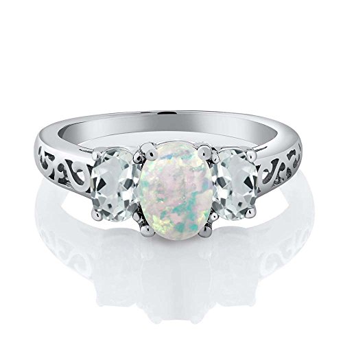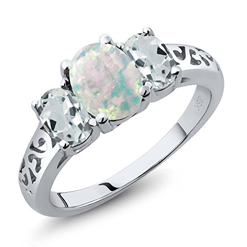 -. Binding : Jewelry -. Brand : Gem Stone King -. Color : White and Sky Blue -. Department : womens -. Feature : This item is proudly custom made in the USA / 100% Satisfaction Guaranteed / Gemstones may have been treated to improve their appearance or durability and may require special care. -. Model : MEG-0011-OCAB-OP-W-AQ-SBL-SS -. NumberOfItems : 1 -. PackageQuantity : 1 -. ProductGroup : Jewelry -. ProductTypeName : FINERING -. Title : 1.91 Ct Oval Cabochon White Opal Sky Blue Aquamarine 925 Sterling Silver 3-Stone Ring