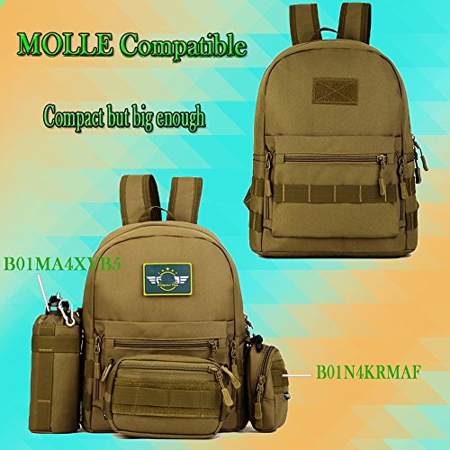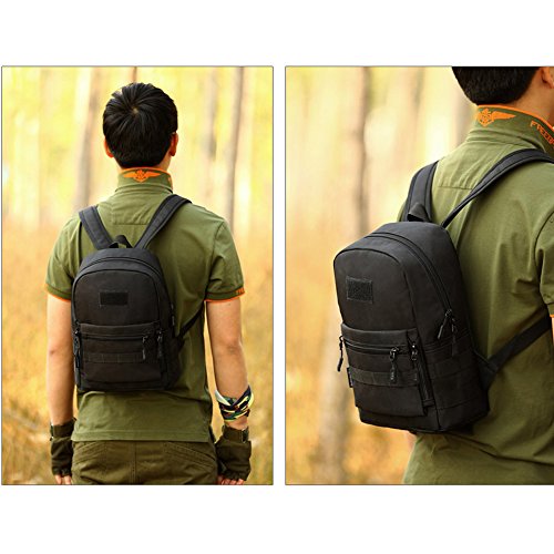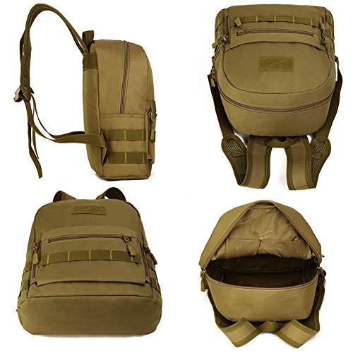 -. Feature : ★LIGHTWEIGHT & WATER RESISTANT --- Casual style for daily life!Weight: 1.1lb. 1000D Nylon, High Abrasion Resistance, Highly Tear Resistant. This mini classic backpack was lightweight and practical, perfect to used as a school backpack, travel bag, hiking backpack, it's comfortable and easy for you to carry on the road / ★APPROP.R.IATE SIZE FOR DAILY LIFE --- Approx dimensions: 12.6"H x (8.26-9.45)"W x 5.11"D. Main pocket fit well for 10 inch laptop,iPad mini, 7.9" tablet. Enough for every day daily activities and heavy-duty enough for going to school/ cycling/ hiking/ camping/shopping/traveling / ★MOLLE SYSTEM compatible which was designed to be used in combination with other equipments, like MOLLE Bags attachments/ water bottle bag/ accessory kits and any other accessories / ★CLASSIC & ERGONOMICS DESIGN --- Main compartment with double-zipper closure; Two exterior zipper pocket; Water-bottle pockets on both sides, padded Ipad/Laptop pocket,2 interior pockets. It's easier to get to stuff like cell phone, iPad, cards, keys, MP3with patch bag on the front. Padded back and straps for more comfort / ★WARRANTY ---? We love our customers and are confident with all of our products and stand behind them,we offer 30 days free money back guarantee ,1 Year Warranty and 24-hour customer service.Please contact us if you have any problem