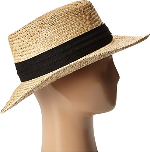 Product Description This is a palm fiber gambler hat with a cotton 3-pleat ribbon around the brim. It has an elasticized sweat and a matte raffia crown tip. 0