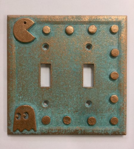 Studio : Sci-Collectables Publisher : Sci-Collectables Binding : Kitchen Product Description Double Pac-Man Light switch Cover. Stone Textured, feels similar to sandstone or Aged Copper in color, genuine patina. Raised/Embossed design. Includes 4 Screws painted to match (6-32 3/4" Ovalhead). Fits all Standard US light switches. Plate measures 4-3/4"x5". (12cmx12.7cm) 0