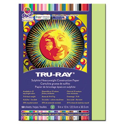 Studio : Pacon Publisher : Pacon Binding : Toy Product Description Heavyweight 100% vat-dyed sulphite with longer, stronger fibers. Tough enough to take scoring, folding and curling without cracking or tearing. Superior fade-resistance keeps projects brighter longer. Acid-free for archival quality. Size: 9 x 12 Paper Colors: Chartreuse Paper Weight: 76 lb.. 0