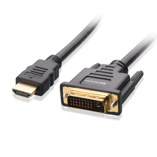 The Cable Matters Gold-Plated HDMI to DVI Cable is the ultimate link for connecting from HDMI equipped source to monitors with DVI input; or from computers with DVI to HDTVs or monitors with HDMI input. The combination of gold-plated connectors, heavy 28 AWG bare copper conductors, and foil & braid shielding provides superior cable performance. Molded strain relief connectors, finger-tightened screws, and easy-grip treads increase durability, ensure a secure connection, and make plugging and unplugging a breeze.