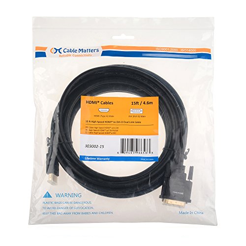Cable Matters CL3 Rated High Speed Bi-Directional HDMI to DVI Cable 15 Feet