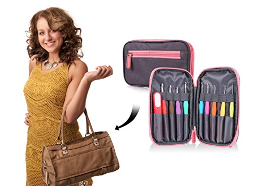 --- STOP WISHING AND START TAKING ACTION --- The travel case looks stylish in grey color and pink trim; only 5” x 8” to fit into your handbag. A must have on-the-go crochet kit. ORDER NOW! [TAGS: grip hooks, crochet hook sets, clover crochet hook set, crochet hooks yarn, crochet needle and yarn, kids hooks]
