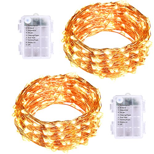 LightsEtc 2 pack 100 LED String Lights 33ft Warm White Decorative Copper Wire Dimmable Fairy Lights