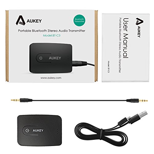 - Title : Bluetooth Transmitter, Aukey Portable Wireless Stereo Music Transmitter Adapter with A2DP and AptX, Simultaneously Pairing with Two Headsets for TV, PC, iPod, MP3, and other 3.5mm Audio Devices (BT-C3)