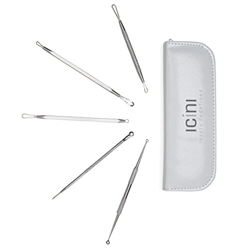 Set of Five Blackhead Extractors in Beautiful Case - All the tools you need to safely remove blackheads and whiteheads.