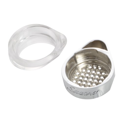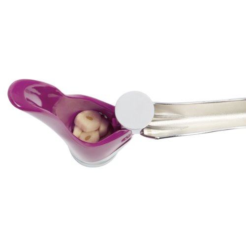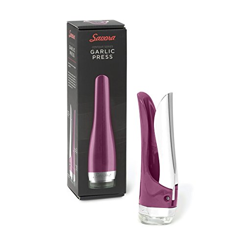 Studio : Lifetime Brands Publisher : Lifetime Brands Binding : Kitchen Product Description Many gourmet recipe calls for four or five garlic cloves but the average press can only hold one clove. The Savora Garlic Press was designed to have a large capacity hopper that is capable of crushing multiple cloves (or one elephant garlic clove) at once. The durable cast plate features beveled cutting edges to help crush garlic more efficiently. The Savora Garlic Press also features a two-pivot design that gives users a six-to-one mechanical advantage. So for every 10 pounds of pressure, it exerts 60 pounds of force. The press has a unique standing design and a cast metal handle for durability. The press comes with a clear cap that can hold a tablespoon of garlic while keeping oils off countertops. Attachments are easily removed and dishwasher safe. 0