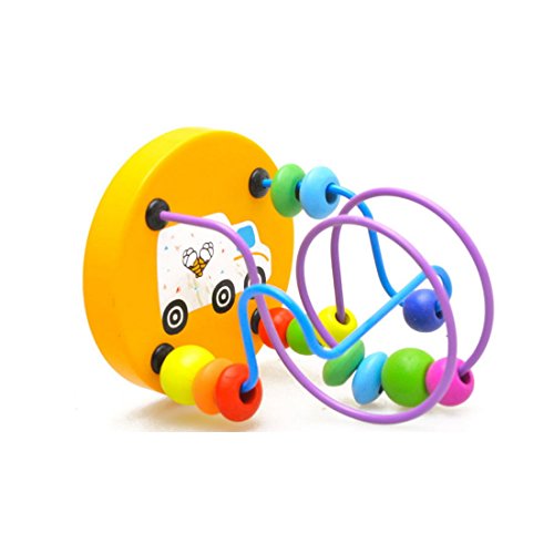 -. Title : Happy Cherry Mini Colourful Wooden Circles Bead Wire Maze Roller Coaster With Wheels Early Education Toys for 0-3 Year Kids Baby Child Toddler- Truck