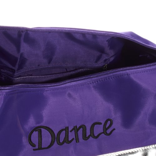 -. Binding : Apparel -. Brand : P.R.Ivate Label -. ClothingSize : One Size -. Color : Purple/Black -. Department : girls -. EAN : 0761258017638 -. Feature : Circular bag fits her shoes, dance outfit and accessories! / Spacious main compartment / Interior zip pocket, exterior mesh pocket and exterior open pocket / Adjustable carrying strap / 12.5" x 9" x 9" -. Label : Gen SH -. Manufacturer : Gen SH -. Model : SH-146273 -. MPN : LYSB00JQMGIUO-OFFSUPPLIES -. PackageQuantity : 1 -. PartNumber : LYSB00JQMGIUO-OFFSUPPLIES -. ProductGroup : Apparel -. ProductTypeName : LAGE -. Publisher : Gen SH -. Size : One Size -. Studio : Gen SH -. Title : Girl's Quilted Nylon Dance Duffle Bag w/ Sequins (Purple/Black/Silver) -. UPC : 761258017638
