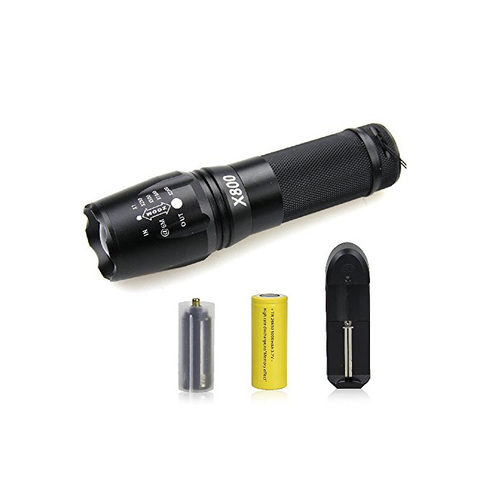 Sunspeed CREE XM-L T6 led회중전등 줌식 최강 군용 800루멘 5모드 1865026650 단4대응 방수 26650전지와 충전기 부속 플래쉬 라이트 한 데