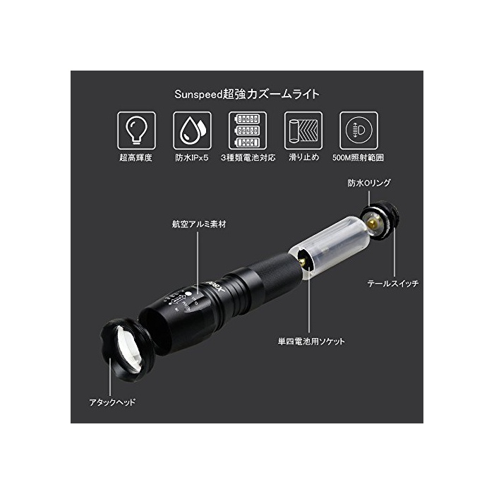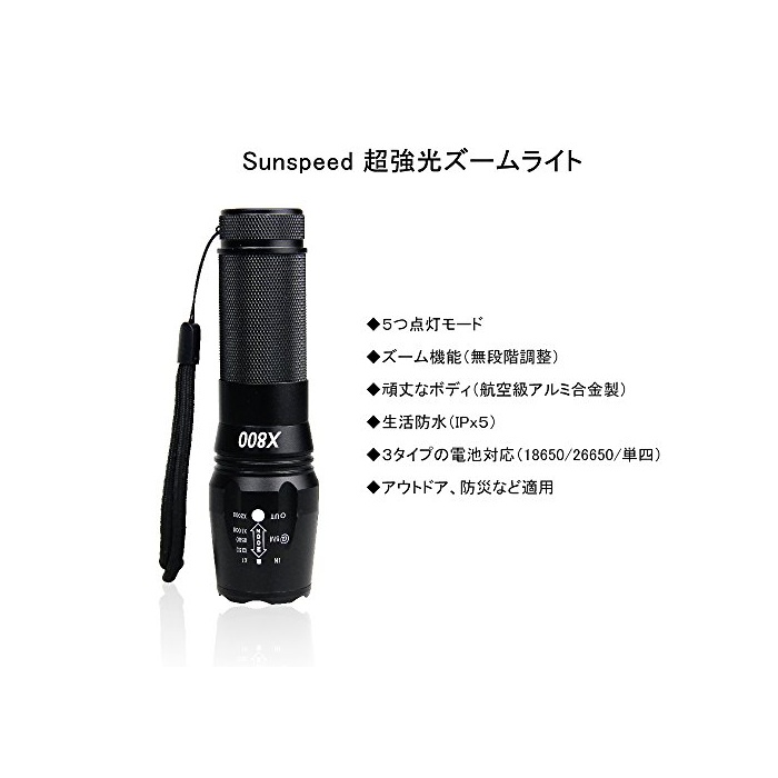 원본상품명: Sunspeed led中電セット ズムライト 最 軍用 800ルメン 5モド 18650/26650/4 防水 26650電池と充電器付 フラッシュライト ハンディライト 力ラ