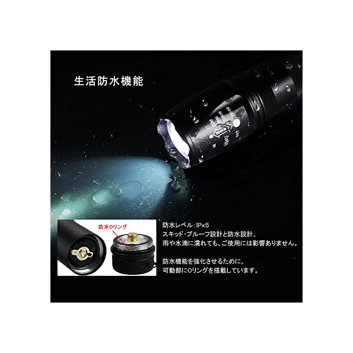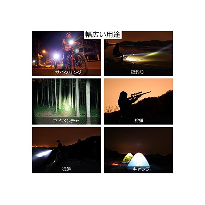 【LED모델】CREE XM-L T6 【밝기】800루멘【조사 범위】500미터【방수 사양】IPx5【충전 시간】8시간
