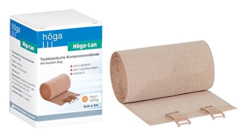 -. Title : Höga Lan, Textilelastische Kompressionsbinde mit kurzem Zug - 8 cm x 5 m gedehnt - sehr hautfreundlich, atmungsaktiv, elastisch waschbar