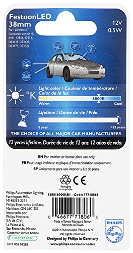 Philips 38mm festoon Bright White Interior Vision LED light, 1 Pack