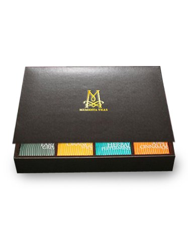-. Feature : A display of 108 brightly colored tea bags presented in a beautiful chest to treat your guests. A variety of flavors to satisfy any taste for any occasion.