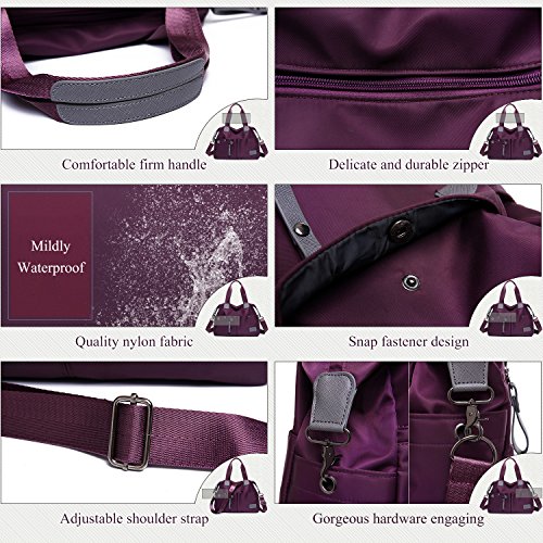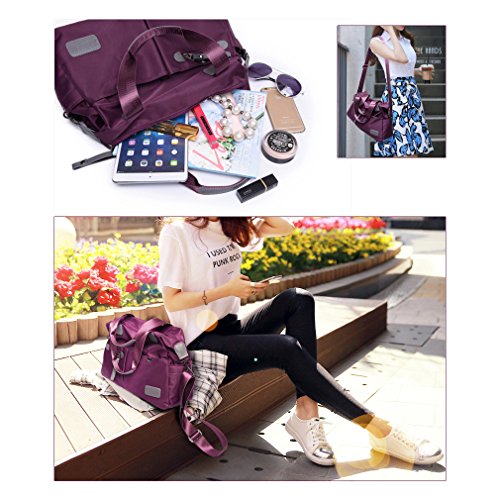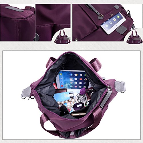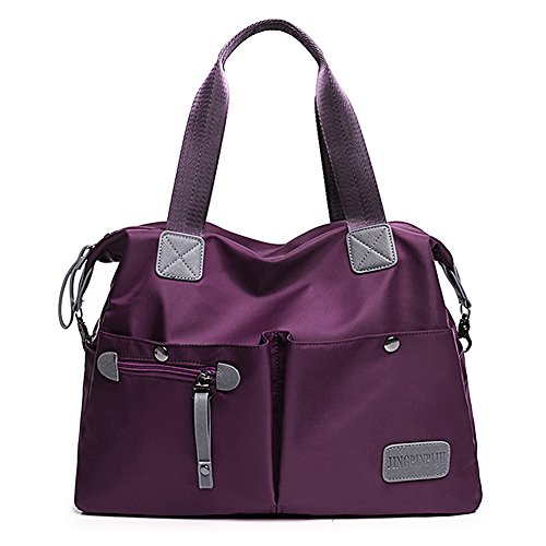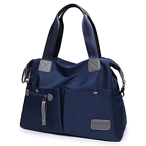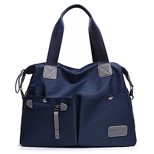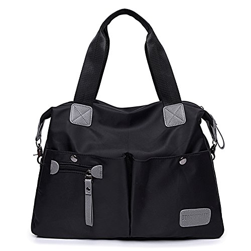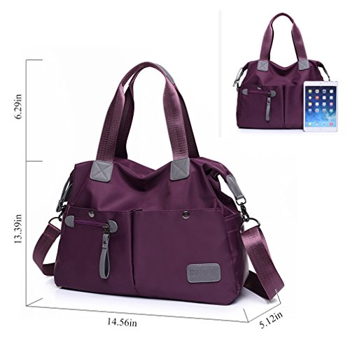 -. Feature : MATERIAL: High Quality Nylon / CLOSURE: Top Zipper Closure / DIMENSIONS: 14.56''(L) x 5.12''(W) x 13.39''(H), Height of Handle: 6.29'' / POCKETS: 1 Main Compartments, 1 Card slot, 1 Phone slot, 1 Inner zipper pocket, 1 Outer Zipper Pocket, 2 Front pocket, 2 Side pocket / FEATURES: Decorative Gold-tone Hardware, Zip-pockets in Middle and Back, easily carry your mobile phone, wallet, cosmetic, IPAD, umbrella and other daily things.