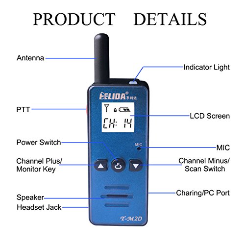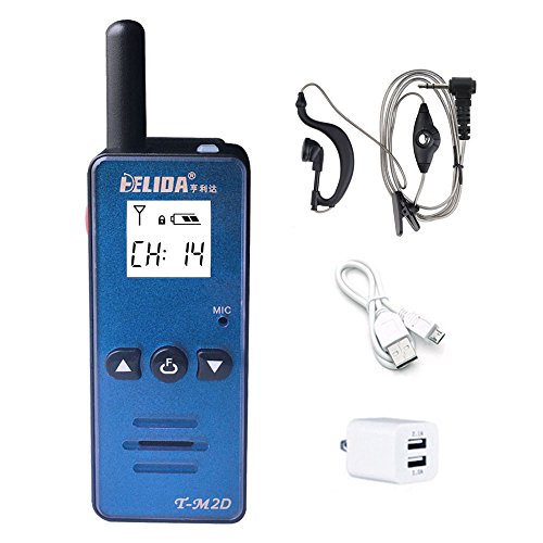 HELIDA T-M2D 128 Channel Mini UHF Portable Walkie Talkie Ham Two Way Radio with Earpiece (Blue)