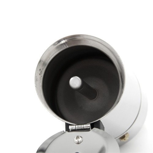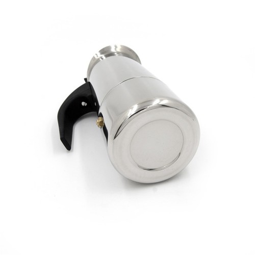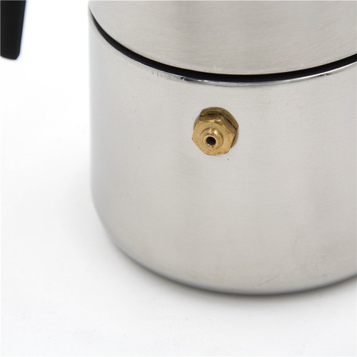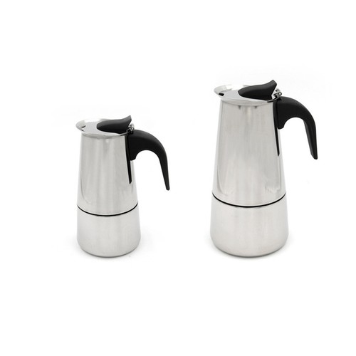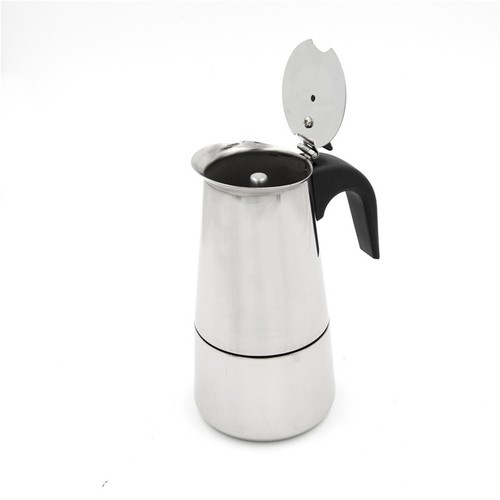 -This coffee maker is stainless steel with a plastic handle which fits in the hand comfortably.