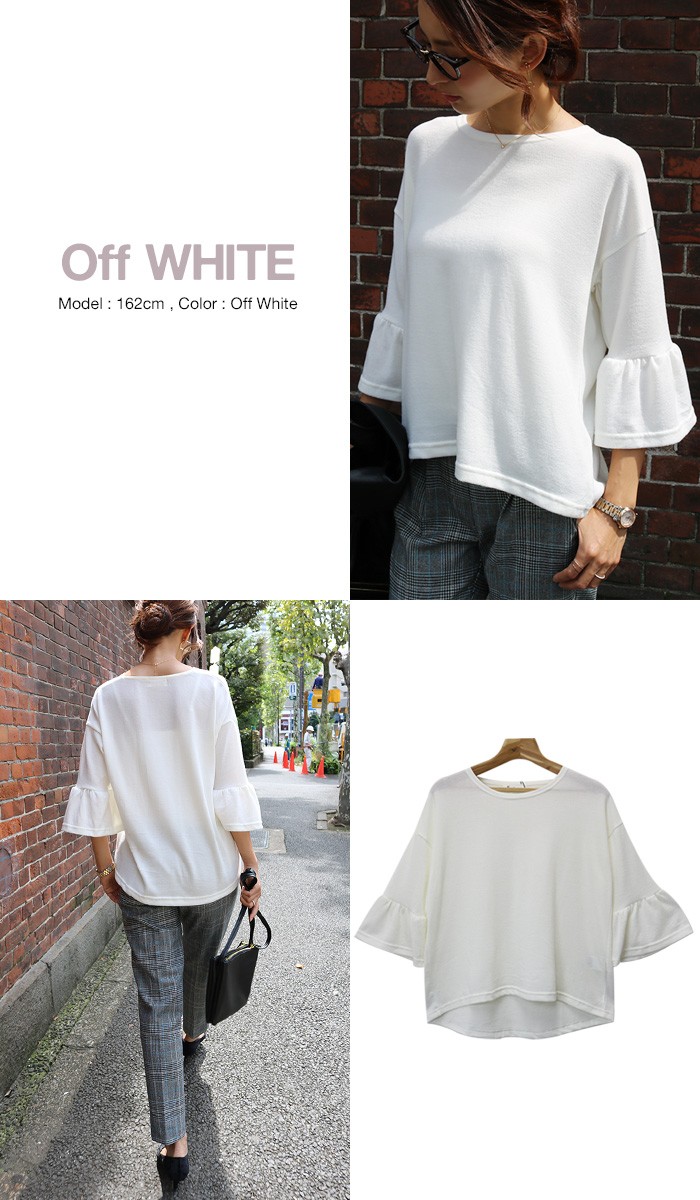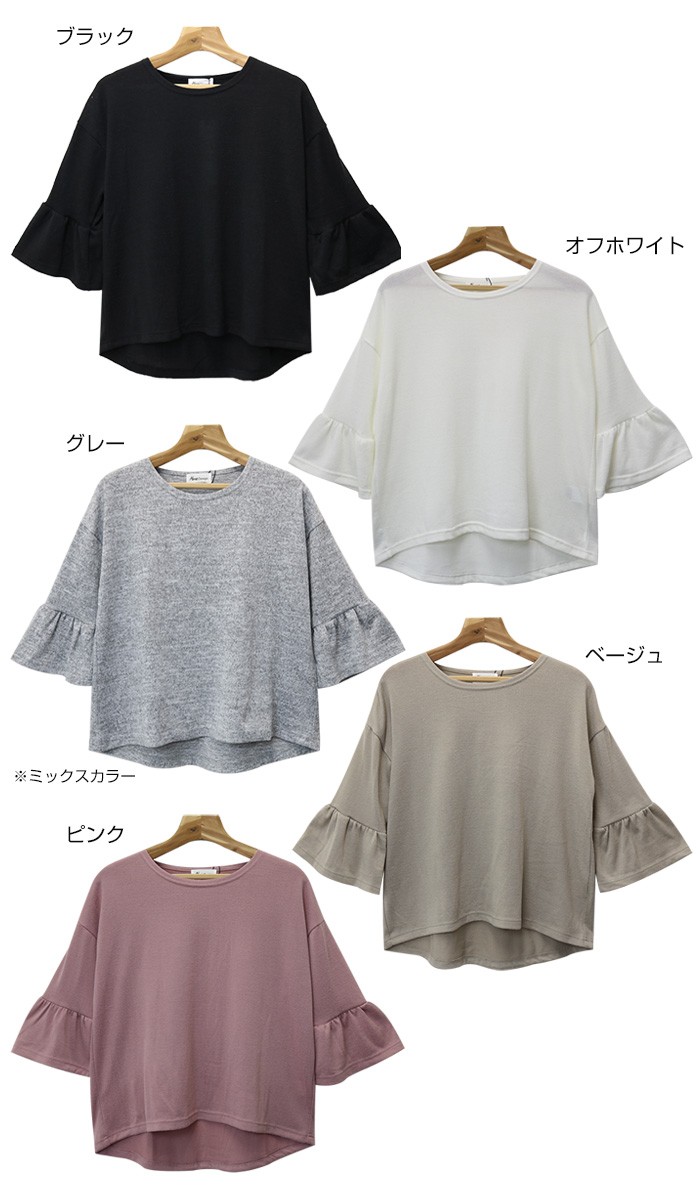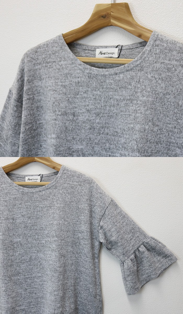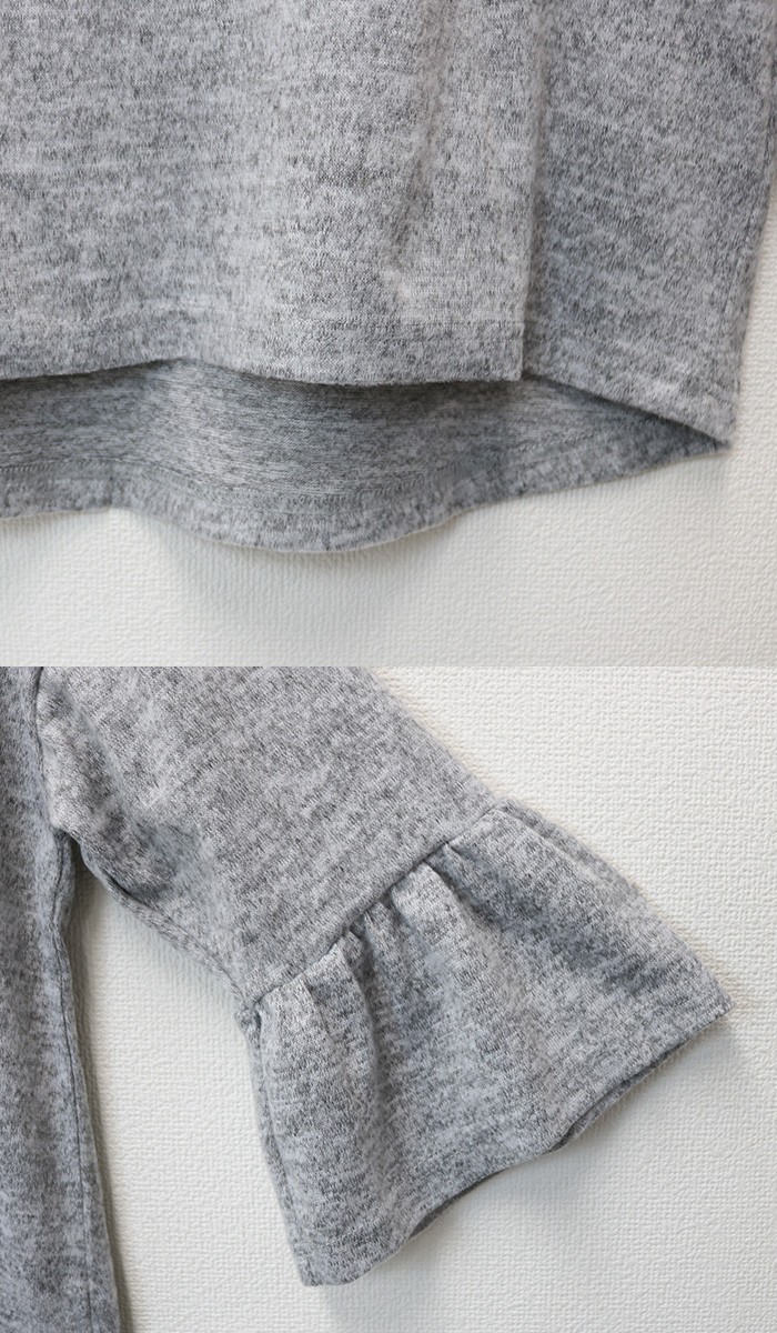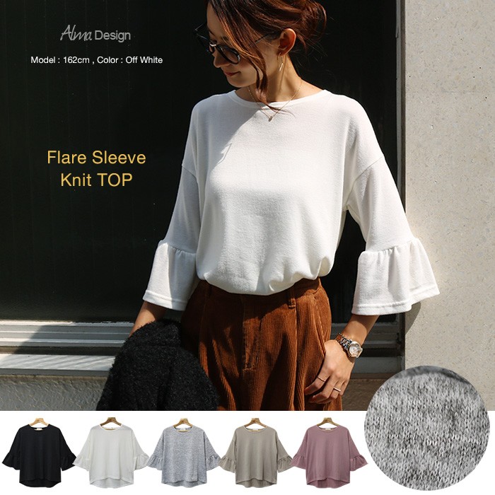 ややドロップショルダーに仕上げたお袖は人気のフレアスリーブです。