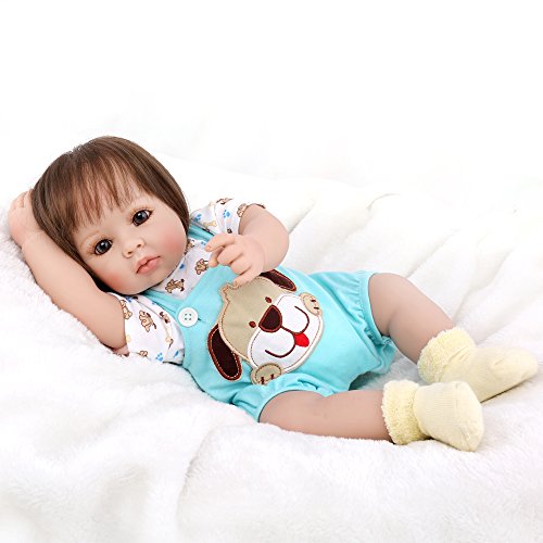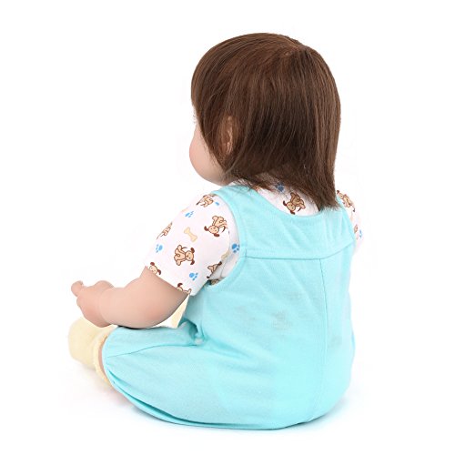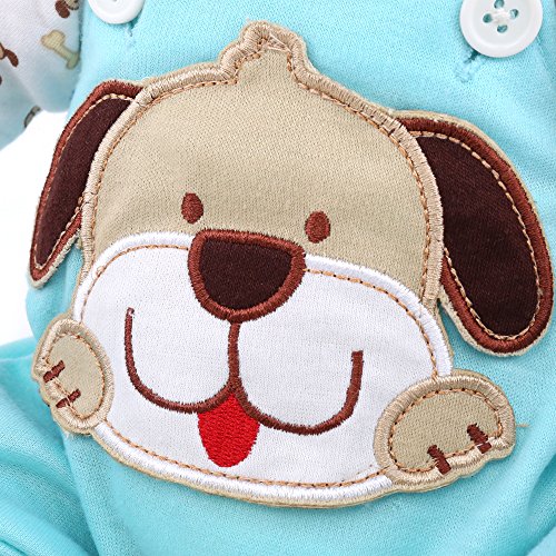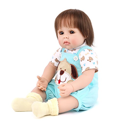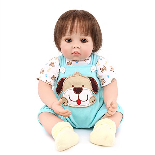 LOOKING - She wearing a cute dog pattern kids rompers, hand applied lifelike eyes & eyelashes and hand painted details, adorable face will make your children feel like holding this friend.