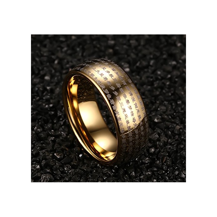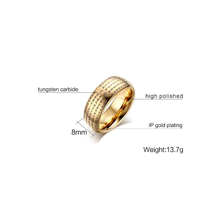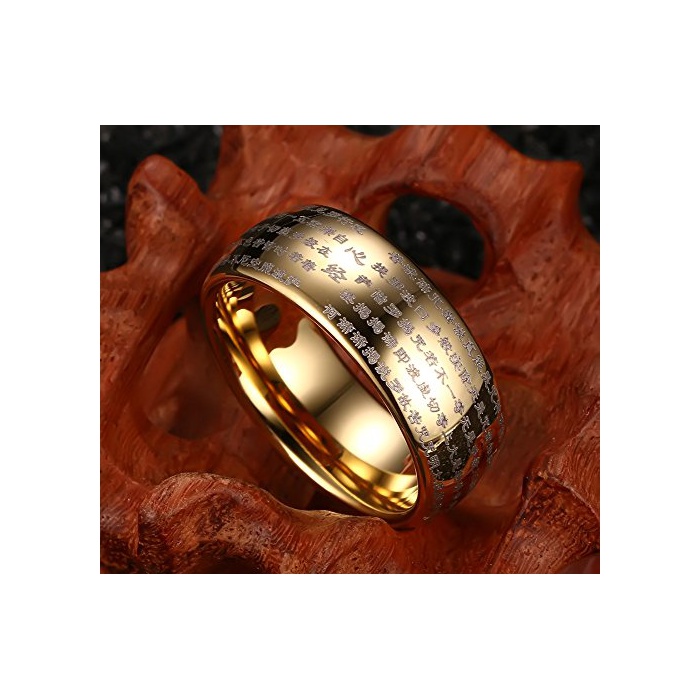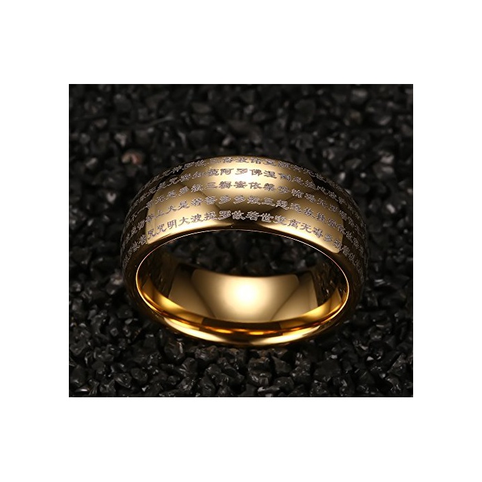 Rockyu 쥬얼리 악세사리 심플 맨즈 레이디스 브랜드 텅스텐 링 클래식 고급 골드 금 부적 경문 부처(프랑스)경 반지