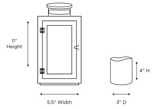 DIMENSIONS - 5.5"D x 13"H || Height with handle extended: 13"H || Candle Dimensions: 3"D x 4.5"H || LED Color Temperature: 2200 Kelvin (Warm White).