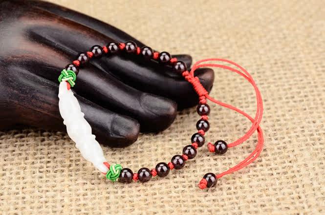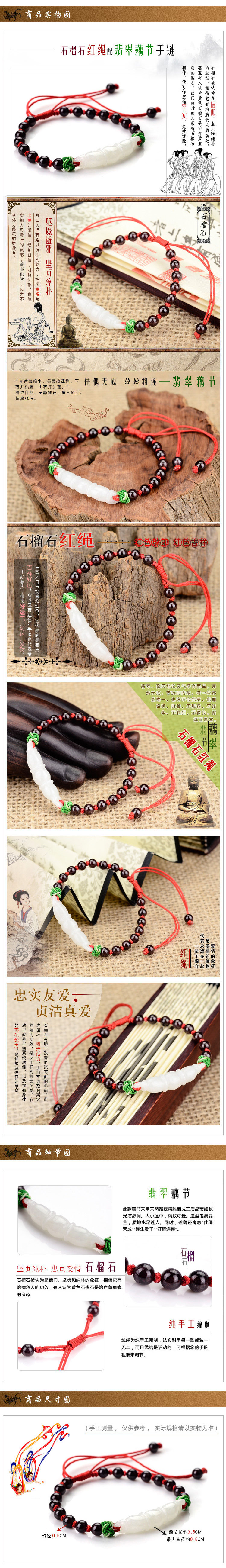 【名称】开光石榴石配翡翠藕节红绳手链 静心养颜开运护身
