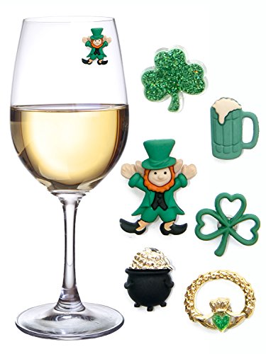 ST. PATRICKS DAY MAGNETIC DRINK MARKERS & WINE CHARMS FOR STEMLESS GLASSES, BEER MUGS OR PINTS - FUN FOR A PARTY, EVEN USE AS FAVORS - SET OF 6