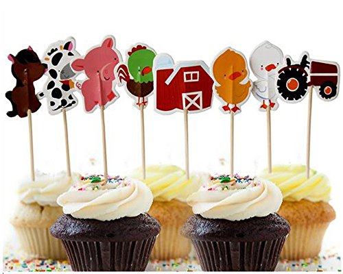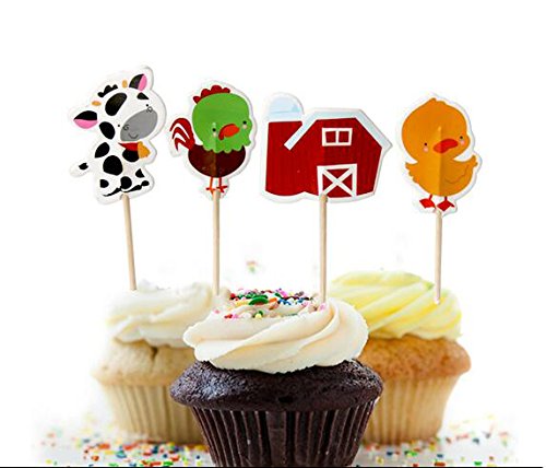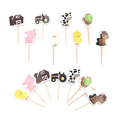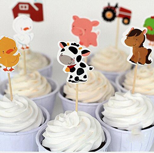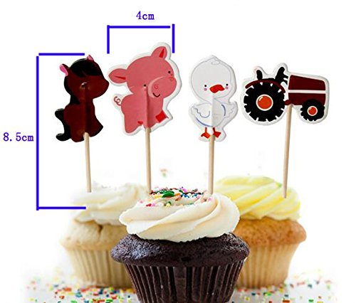 48Pcs Farm Animals Cupcake Muffin Topper Picks Cake Decoration Baby Shower Birthday Party Favors Animals Zoo Cow,Chickens,Ducklings,Pigs,Horses,Tractors